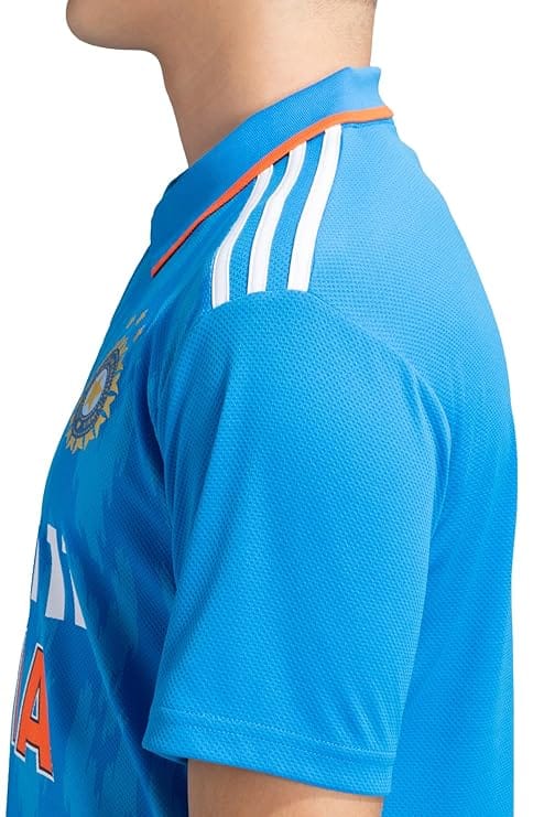 Show some on-pitch style. A show of simple support. This adidas men fan jersey radiates cricket inspired look of Indian team for a crisp and clean design. Things it does share with its pitch-going cousins are moisture-wicking AEROREADY and the team's all-new badge, adidas logo and BCCI logo so you'll feel and look the part. Made with 100% recycled materials, this product represents just one of our solutions to help end plastic waste.