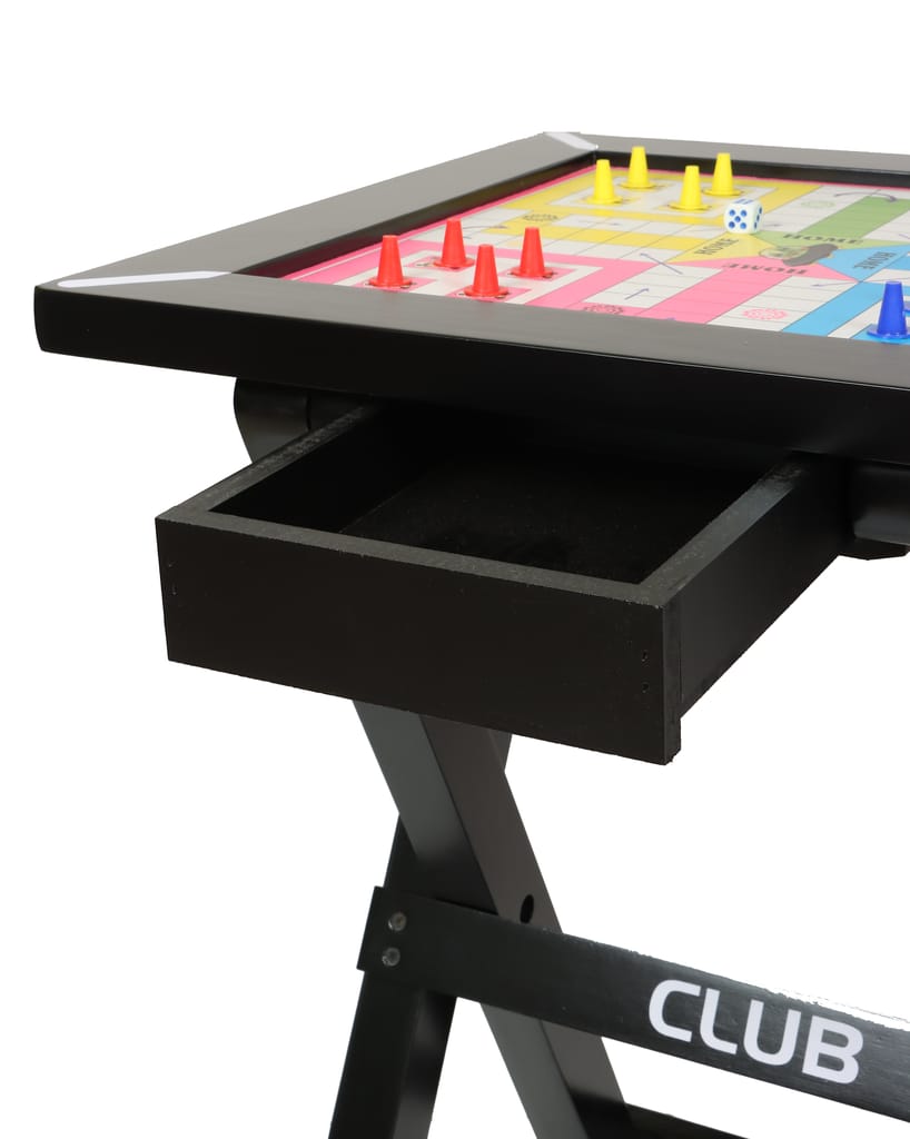 હવે ગુમ થયેલ ગોટી અને ડાઇસ શોધવાની જરૂર નથી. બોર્ડની નીચે, તમને એક બિલ્ટ-ઇન વર્કિંગ ડ્રોઅર મળે છે જે સરળતાથી બહાર નીકળી જાય છે. દરેક રમત પછી બધા લુડો પ્યાદા અને ડાઇસને સુરક્ષિત રીતે સંગ્રહિત કરવા માટે તેનો ઉપયોગ કરો. આ સરળ સુવિધા સેટને સંપૂર્ણ રાખે છે અને તમને વારંવાર વધારાના ટુકડા ખરીદવાથી બચાવે છે. ડ્રોઅર છૂટક એક્સેસરીઝની ચિંતા કર્યા વિના ટેબલને એક રૂમમાંથી બીજા રૂમમાં લઈ જવાનું પણ અનુકૂળ બનાવે છે.