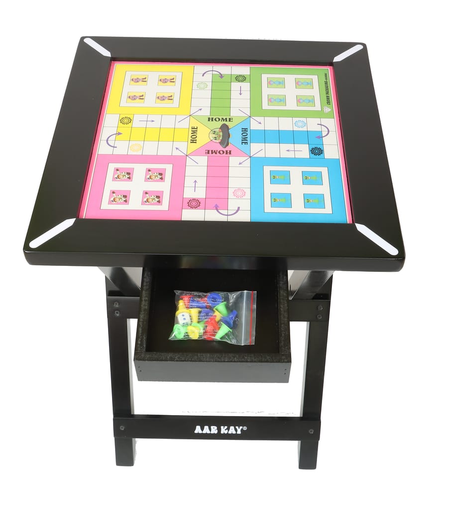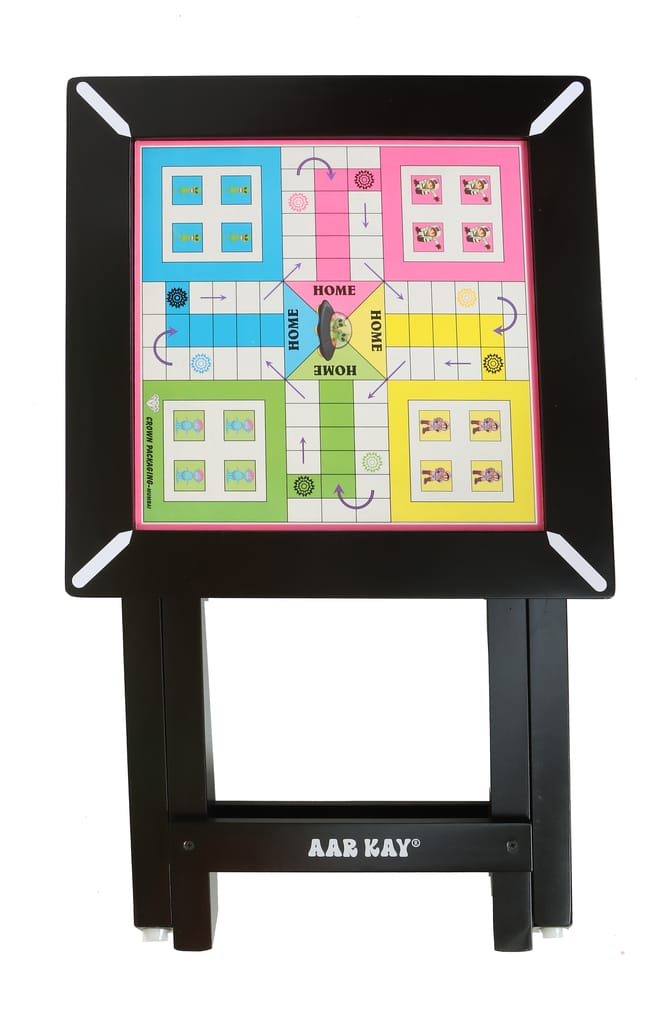 ફોલ્ડિંગ લાકડાનું લુડો ટેબલ: KNK લુડો બોર્ડ ફોલ્ડિંગ લાકડાના સ્ટેન્ડ પર લગાવેલું છે - રમવા માટે ખુલ્લું, ફોલ્ડ કરવા અને પૂર્ણ થયા પછી બાજુ પર રાખવા માટે.